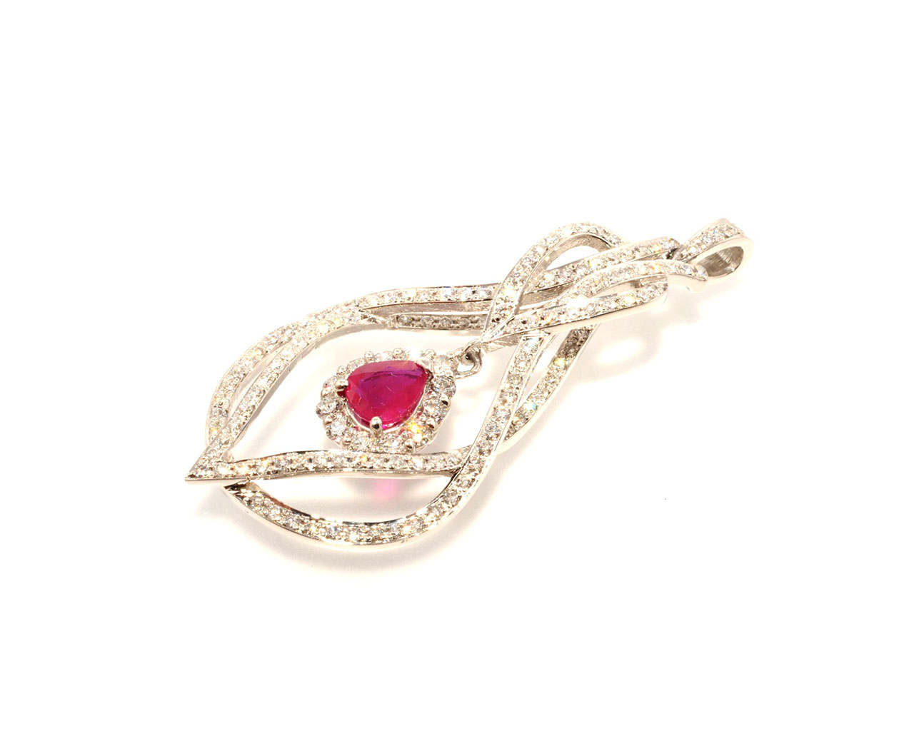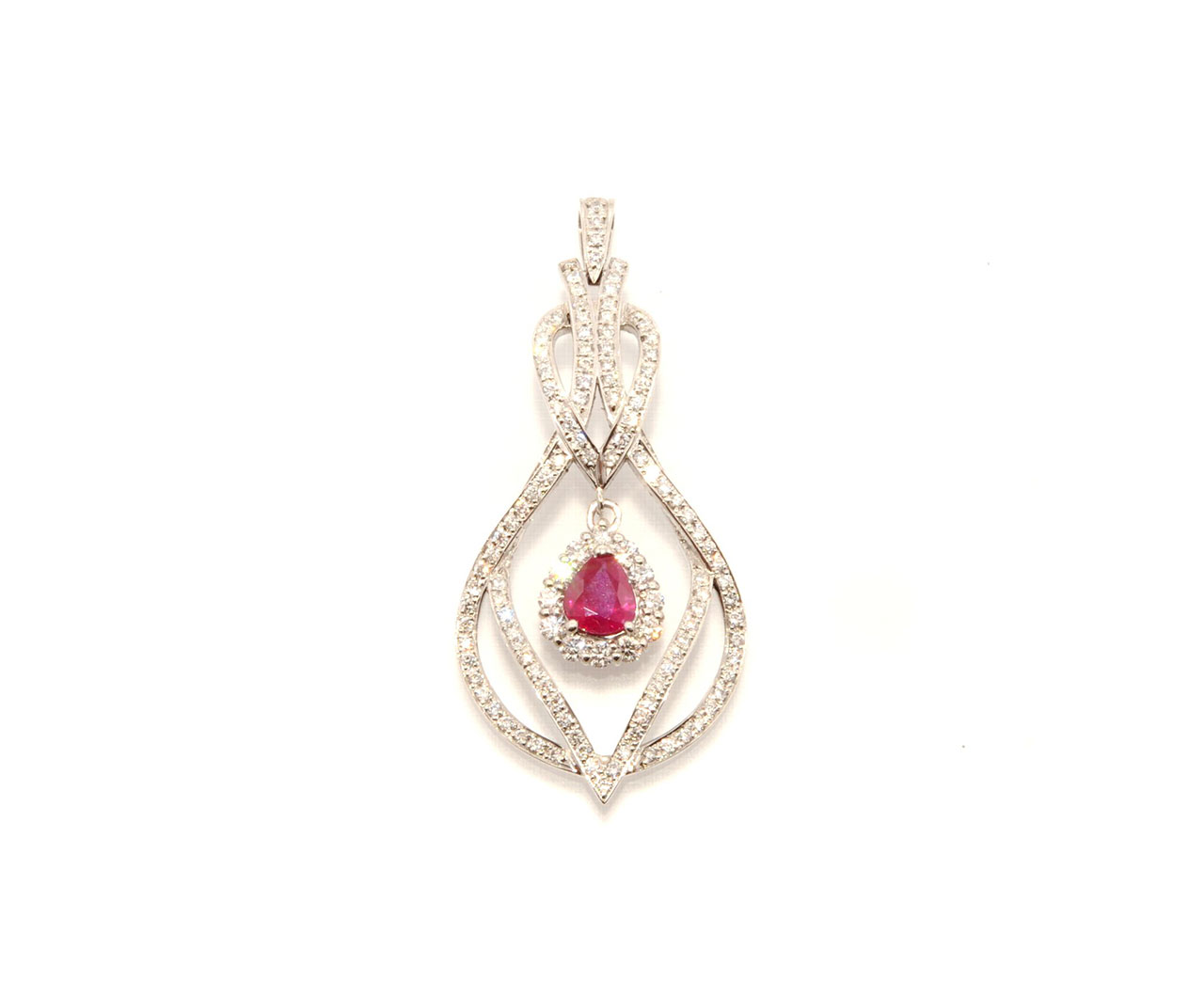 店頭に並んでいた商品をが気に入って頂き、同じデザインで作って欲しいとの事でした。全体にダイヤモンドを留め、ルビーの周囲をダイヤモンドで埋め尽くすことで、より一層ルビーの輝きを引き立て豪華に仕上げました。