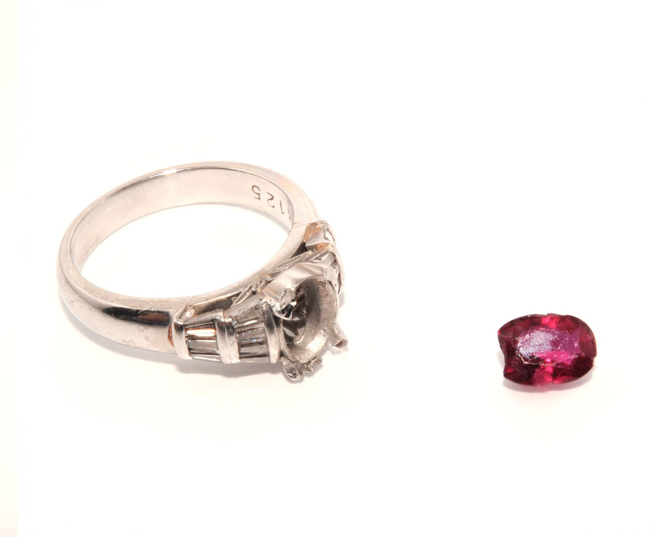 枠から石を外しお客様には、ルビーの状態を説明してリカットを薦めました。