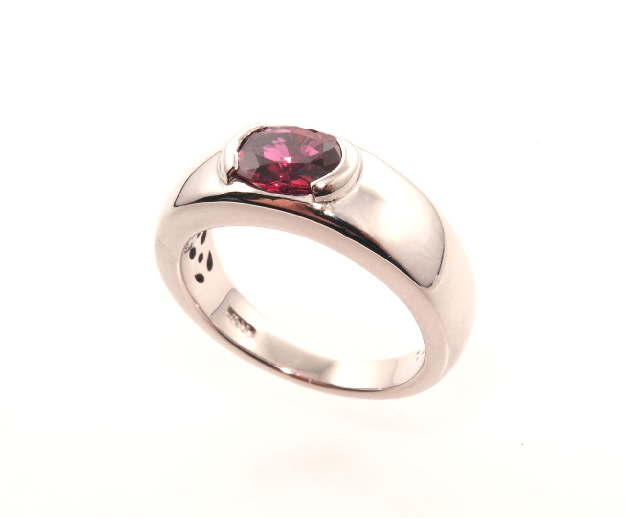 お客様のご希望は、「ルビーが小さくならないように、デザインはとにかくシンプルで着け心地の良い指輪に作り替えてもらいたい」