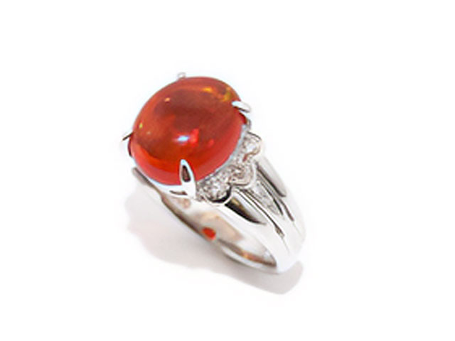 お客様は、こちらのメキシコオパールをたまに見ては、美しさにうっとりしているとおしゃっていました。私も久しぶりに綺麗なファイヤーオパールに感激致しました。お客様は、この取巻きが着けづらいとの事でした。